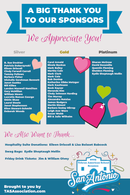What an unforgettable reunion! Our TAS 2025 Reunion in San Antonio was a beautiful blend of nostalgia, laughter, and new connections. From the moment we arrived at the stunning hotel to the final farewell breakfast, the energy was electric and the spirit of TAS was alive and well.