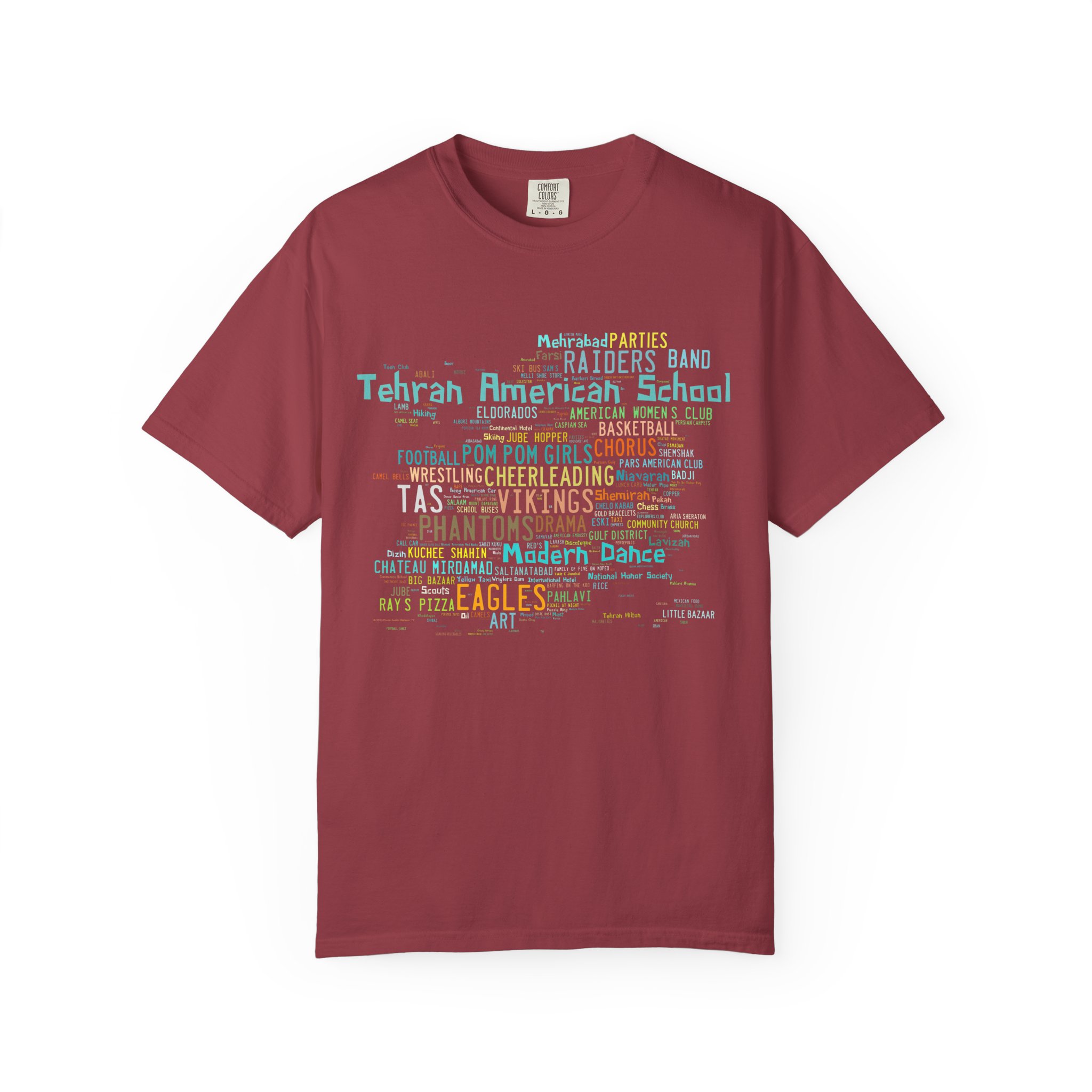 Tehran~American~School, TAS, Eagles, Phantoms, Vikings, Raiders, Modern~Dance, Cheerleading, Pom~Pom~Girls, Band, Chorus, Drama, Art, Tehran~American~School, Wrestling, Basketball, Football, Mehrabad, Mirdamad, Chateau, Ray’s~Pizza, American~Women’s~Club, Eldorados, Niavaran, Shemiran, Pahlavi, Kuchee~Shahin, Lavizan, Farsi, Jube~Hopper, Jube, Gulf~District, Pars~American~Club, Badji, Scouts, Saltanatabad, Community~Church, Little~Bazaar, Big~Bazaar, eSki, Dizin, Shemshak, Chess, Hiking, Abali, Skiing, Ski~Bus, National~Honor~Society, Chelo~Kabab, Rice, Lamb, Pekan, Oil, School~Buses, Sam’s, Red’s, Gold~Bracelets,Camels,Camel~Bells,Caspian~Sea,Salaam,Yellow~Taxi, Call~Car,Taxi, Aria~Sheraton, Tehran~Hilton, International~Hotel, Continental~Hotel, Lunch~Card, Discoteque, Teen~Club, Brass, Copper, Persian~Carpets, Water~Pipe, Camel~Seat, Wriglers~Gum, Beeg~American~Car, Melli~Shoe~Store, Mast, Sabzi~KuKu, Samavar, Chai, Noruz, Ramadan, Barf, Barfing~on~the~Koo, Barbari~Bread, Lavash, Moped,